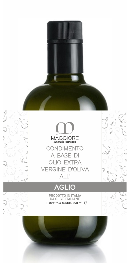 Condimento a base di olio extravergine d’oliva al gusto di aglio dall’intenso impatto olfattivo, conferisce alle pietanze a cui si accompagna le sue tipiche note agrodolci e pungenti.