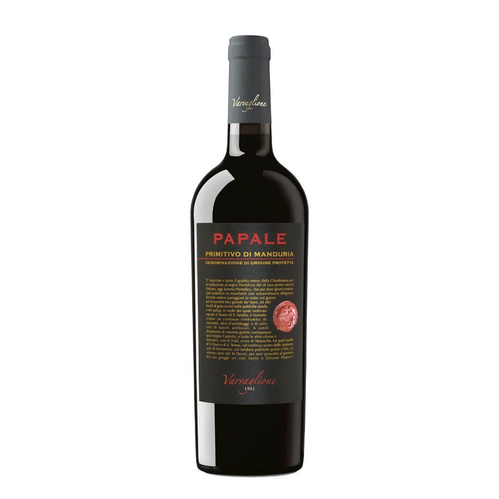 Il Primitivo di Manduria ‘Papale Rosso’ di Varvaglione è un intenso vino pugliese a base di un vitigno identitario della regione. Viene affinato a lungo in botti di rovere che donano morbidezza al sorso e aromi fini di vaniglia, che complementano intensi sentori di frutti rossi in confettura. Al palato è avvolgente e morbido, i tannini vellutati compongono una struttura intrigante che dona grande impatto del sorso.