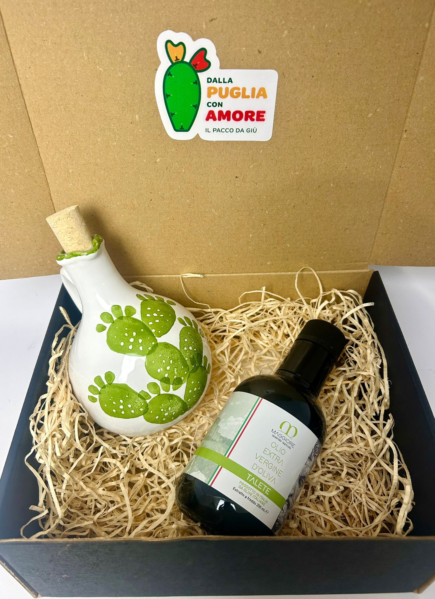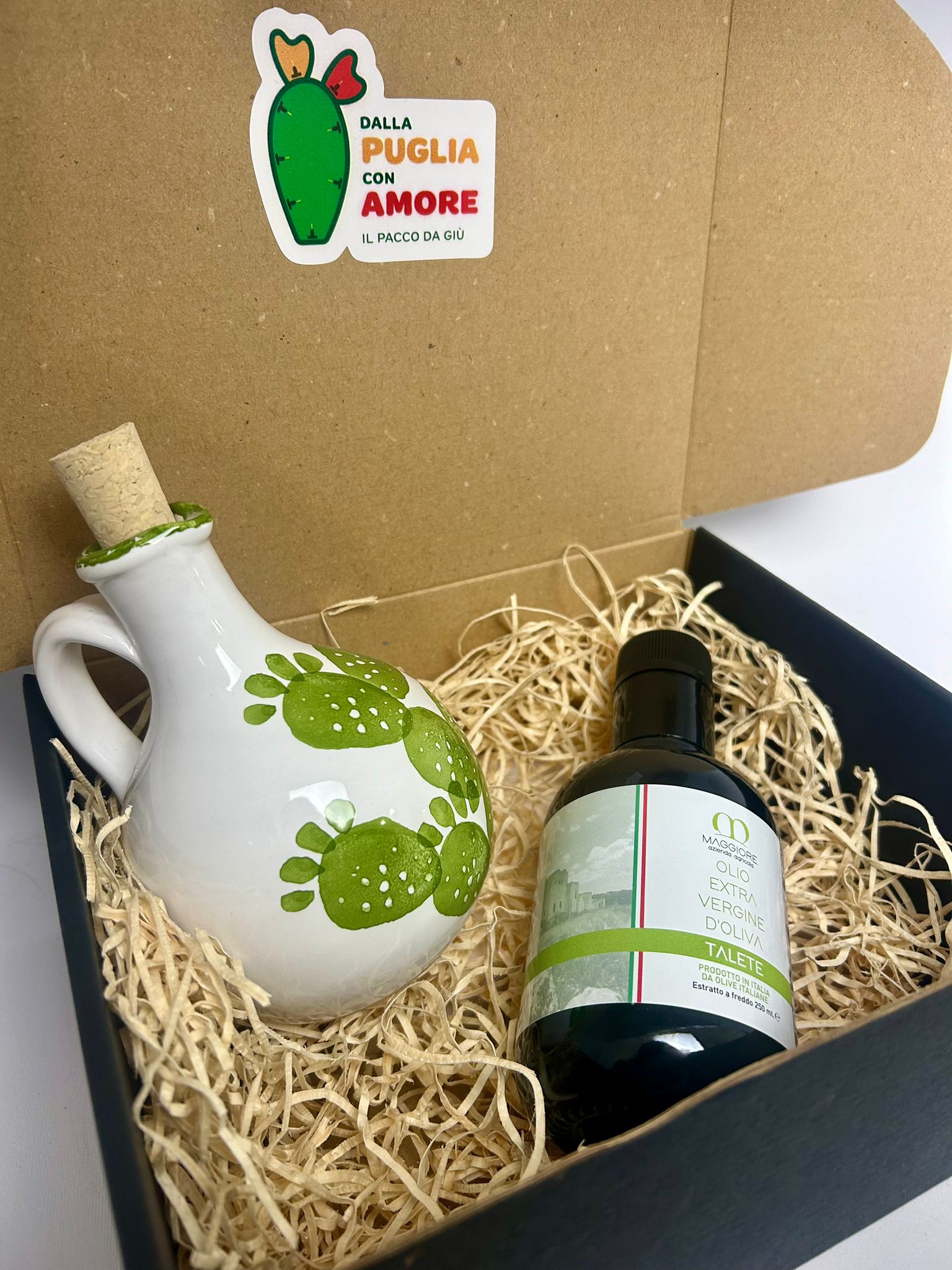 • 1 oliera artigianale in ceramiche di Grottaglie, dipinta a mano da 250 ml;