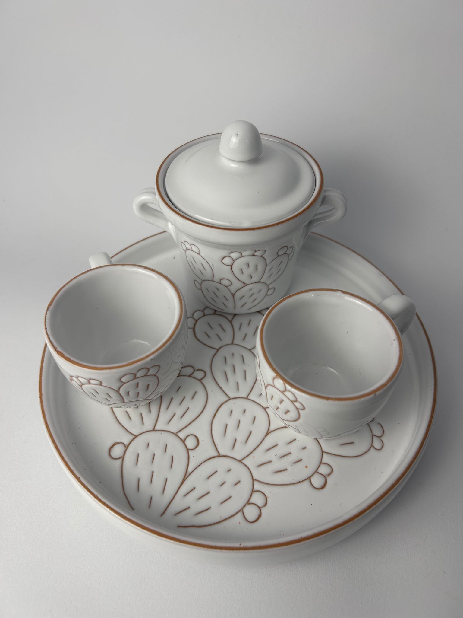Il set comprende 2 tazzine da caffè con zuccheriera e vassoietto circolare.