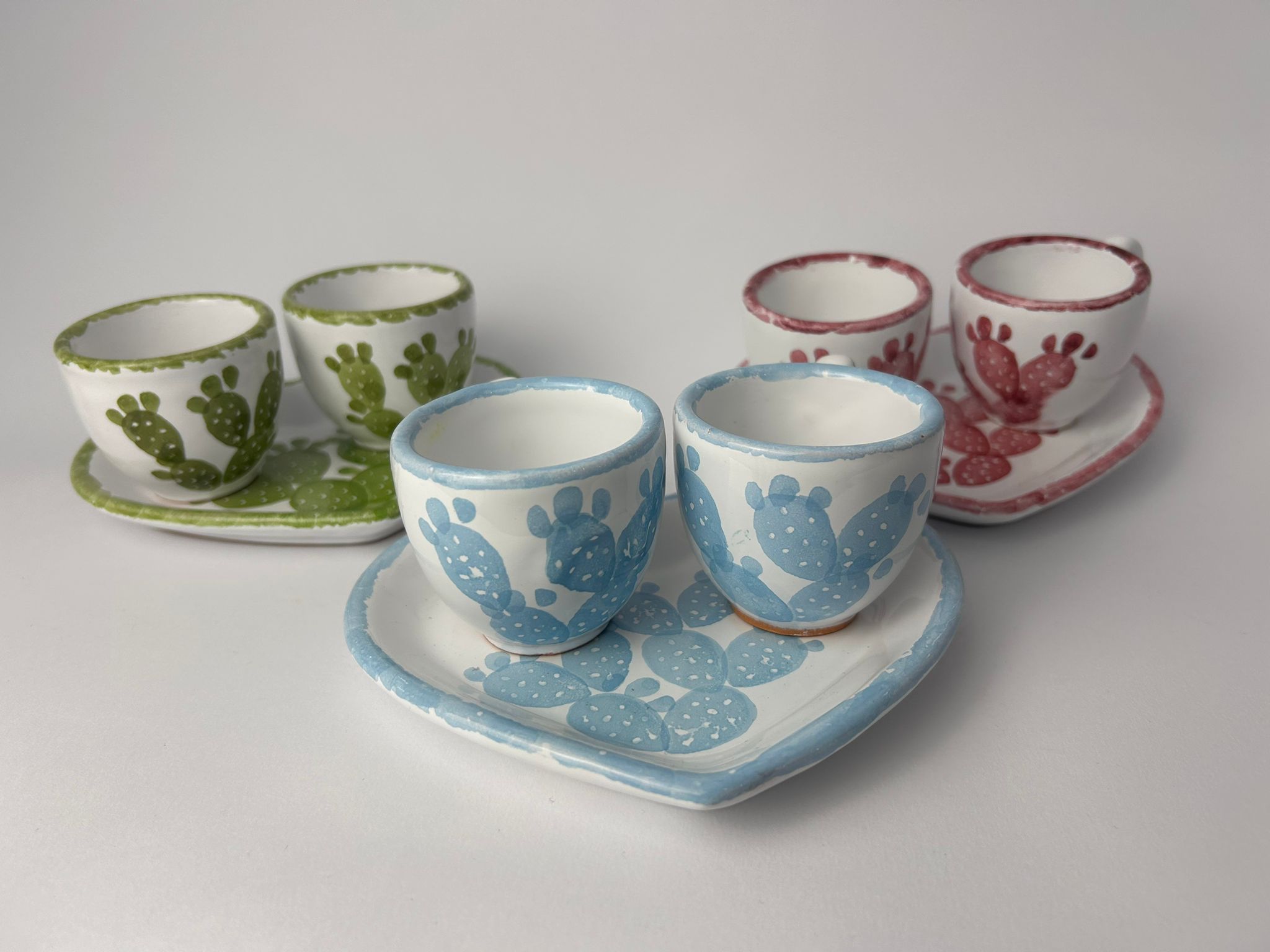 Set da caffè artigianale realizzata e dipinto a mano, dai Maestri Ceramisti di Grottaglie.