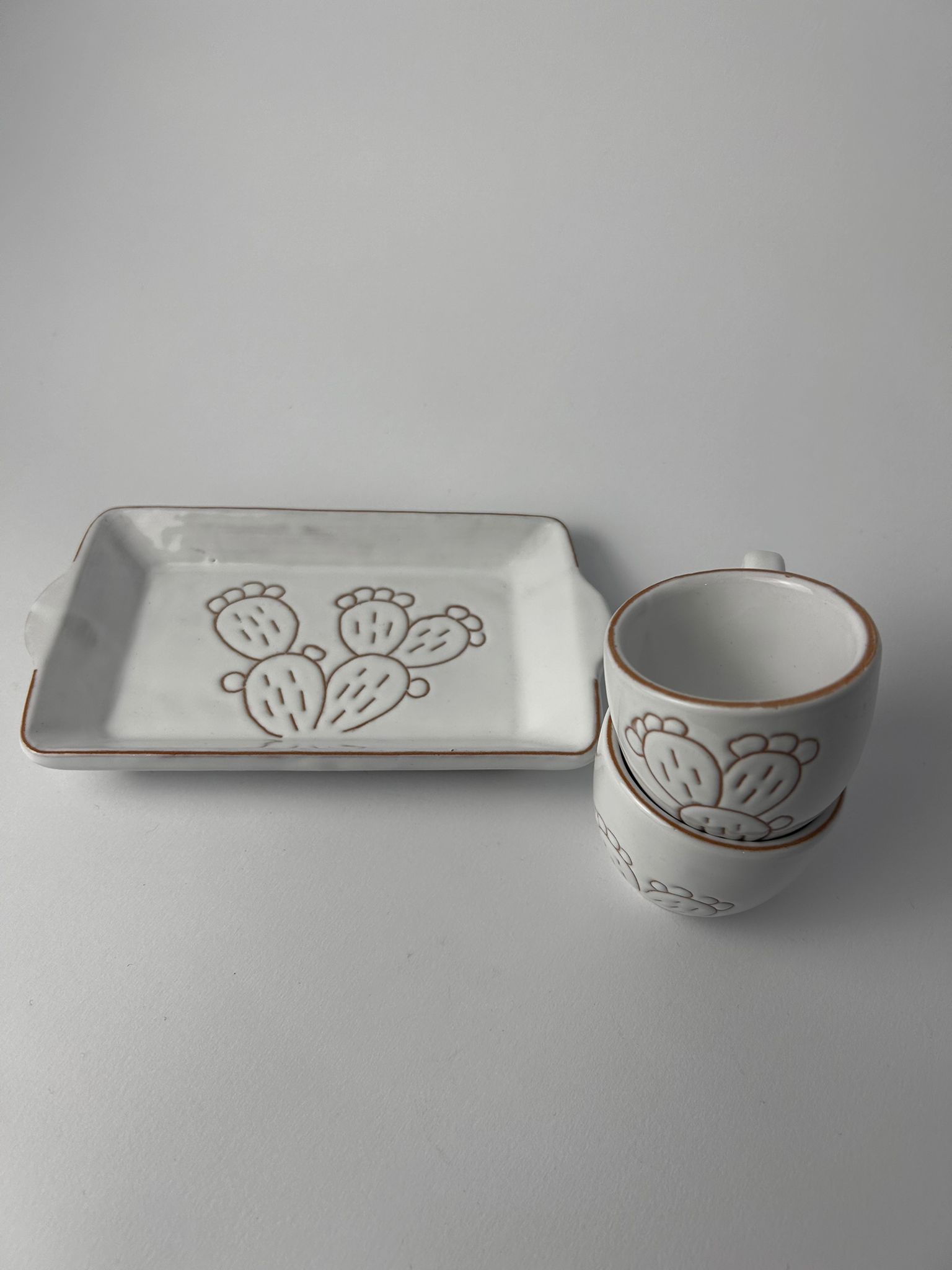 Il set comprende 2 tazzine da caffè e vassoietto.