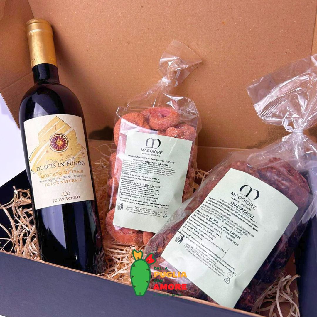 - 1 bottiglia di Dulcis in Fundo, Moscato di Trani, annata 2019, 14% VOL;