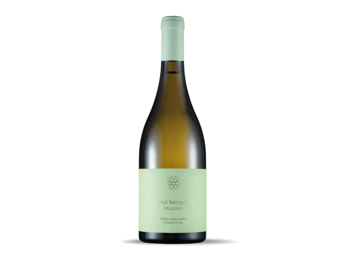 L’elegante mineralità caratterizza questo vino le cui uve provengono da un vigneto tenacemente ancorato alle terre rosse della tenuta Castello di Serranova. Completa il quadro sensoriale la prossimità del vigneto al mare adriatico che dona, involontariamente, la sapidità caratteristica del Fiano Vallone. Dal colore giallo paglierino con decisi riflessi verdognoli, luminoso, brillante. l’odore intenso e persistente, complesso, i sentori che emergono ricordano i fiori bianchi, i frutti tropicali, la pera, l’albicocca, si fondono con deliziose note agrumate e balsamiche. con un sapore armonico, fresco, sapido, ben strutturato, di ottima persistenza aromatica.