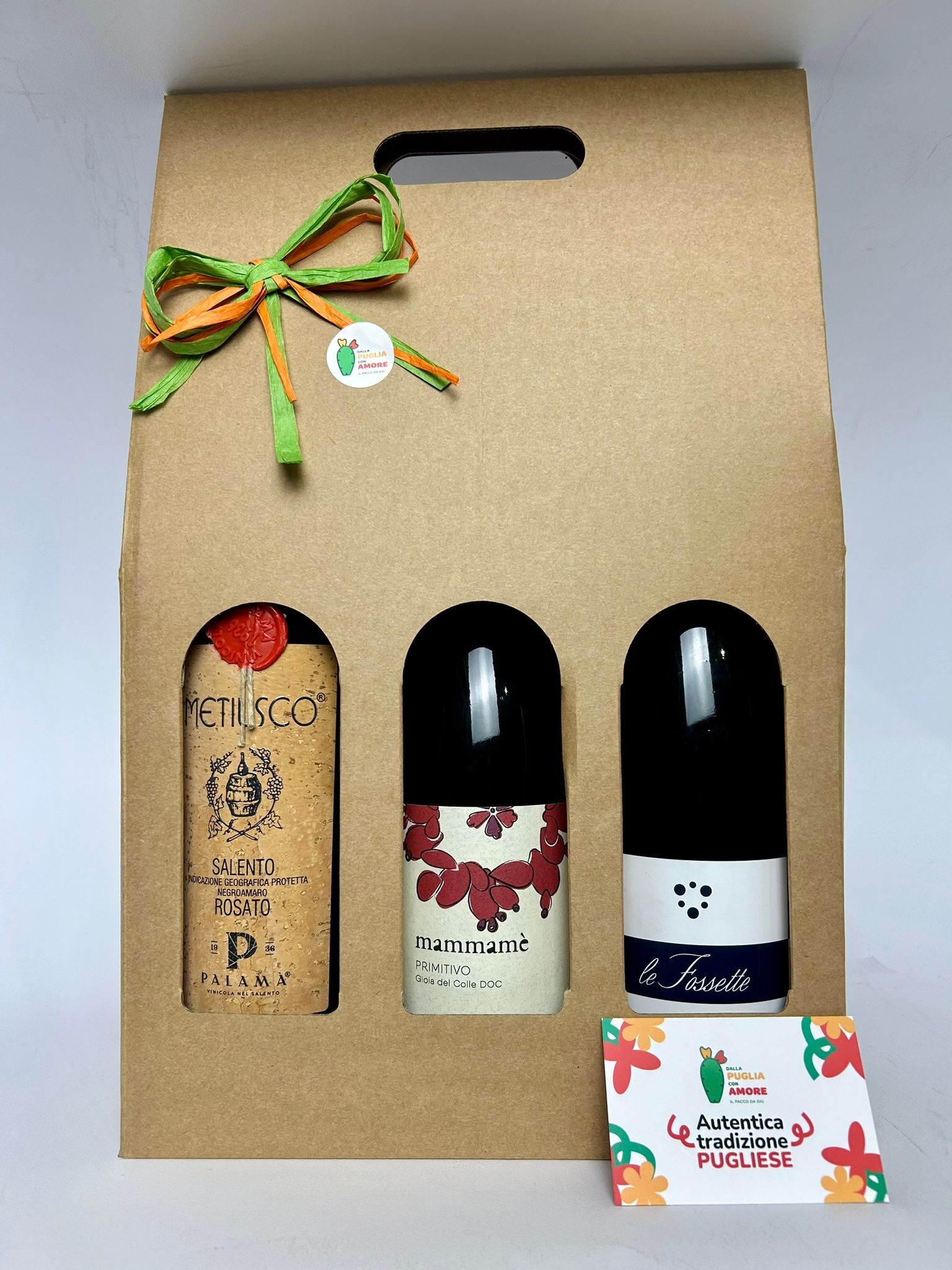 - 1 bottiglia di Mammamè, Primitivo DOC Pugliese 750ml, annata 2020, 15% VOL;